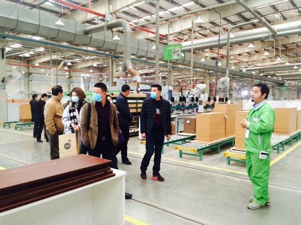 15日早晨,新利18官方会议代表一行来到圣奥海宁生产基地,在工作人员的带领下,近距离学习了圣奥的先进规范,科学管理的家具生产。