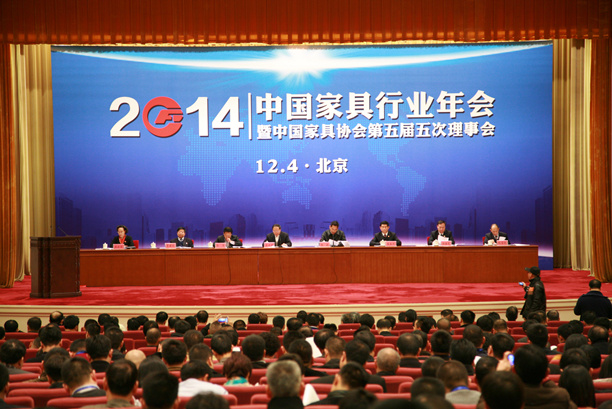 2014年12月4日,中国家具行业年会暨中国家具协会第五届五次理事会在北京人民大会堂隆重召开,中国轻工业联合会会长步正发、民政部民间组织管理局副巡视员赵泳、国资委行业协会联系办公室副主任张涛、中国家具协会理事长朱长岭、副理事长刘金良、副理事长兼秘书长张冰冰、副理事长陈宝光、名誉理事长贾清文等领导,新利18官方等来自全国各地的地方家具协会、会员企业、媒体记者六百余人出席了大会。会议由中国家具协会副理事长兼秘书长张冰冰主持。