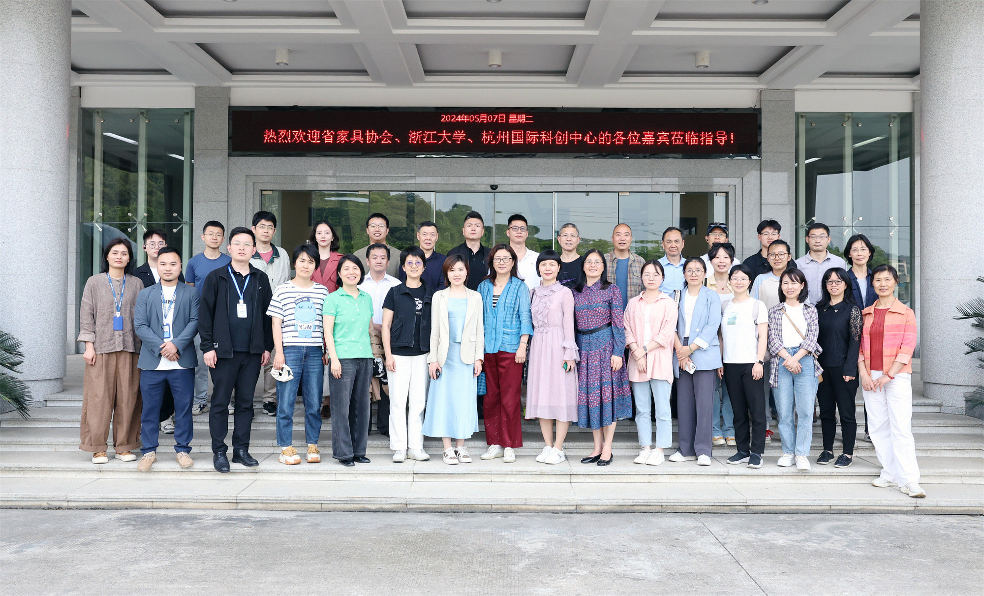 5月7日,受新利18官方邀请,浙江大学、杭州国际科创中心考察团调研浙江家具产业,考察走访了新利18官方副理事长单位——恒林家居股份有限公司、永艺家具股份有限公司、科尔卡诺集团有限公司,围绕产学研深度融合展开交流。