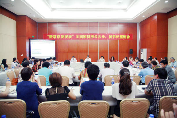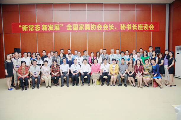 2015年5月28日,“新常态 新发展”全国家具协会会长、秘书长座谈会在天津召开。中国家具协会理事长朱长岭、副理事长刘金良、副理事长兼秘书长张冰冰及全国各个省市家具协会会长、秘书长等共计70余人出席了大会。会议由中国家具协会副理事长兼秘书长张冰冰主持。会上,我协会蒋鸿源理事长、马志翔秘书长针对浙江家具行业的发展情况作了介绍。
