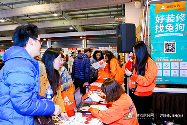 在刚过去的2月,兔狗全国家装节席卷了国内一二线城市。各城家装节的现场,都能看到一群身影全天候在网友服务处忙碌着——兔狗装修管家。穿着橘色工作服,看着阳光、热情的他们平均工作年龄已有3年。