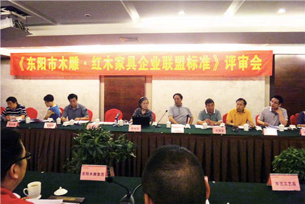 2014年6月11日,《东阳市木雕·红木家具企业联盟标准》评审会在海德建国酒店举行,由浙江省家具标准技术委员会教授级高工梁米加女士任组长的评审组经过认真研究讨论,一致认为该联盟标准符合东阳市当前实际,同意通过评审。