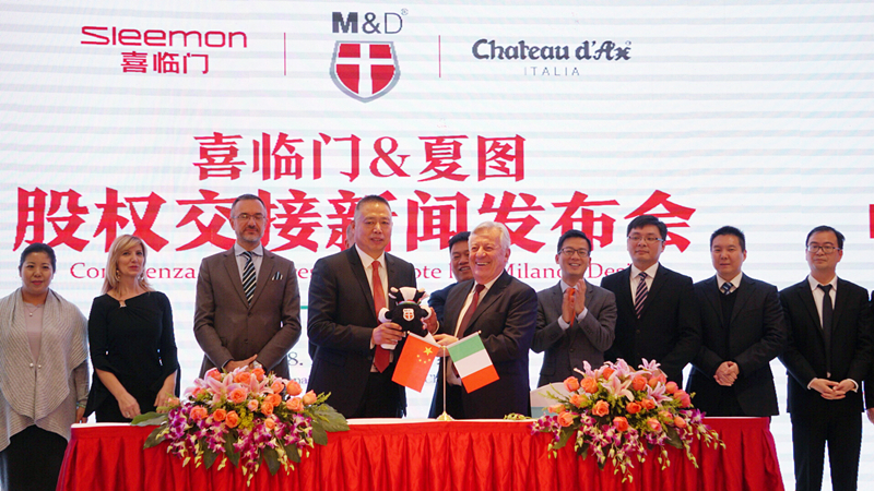 2018年1月31日,喜临门与夏图股权交接新闻发布会在绍兴总部隆重举行。喜临门家具股份有限公司董事长陈阿裕、副董事长沈冬良、总裁杨刚、董事会秘书张毅,Chateau d'Ax夏图集团董事长Colombo Antonio、美国分公司副总裁Colombo Antonella、首席执行官Lucio Caroni,嘉兴米兰映像家具有限公司总经理兼董事Colombo Paolo、市场总监王晓丽、监事夏莉敏、人力资源总监Zanoni Alessandro等双方公司的管理团队及顾问团队,中国家具经销商联合会主席王大为,以及各界新闻媒体代表共80余人参加了发布会。