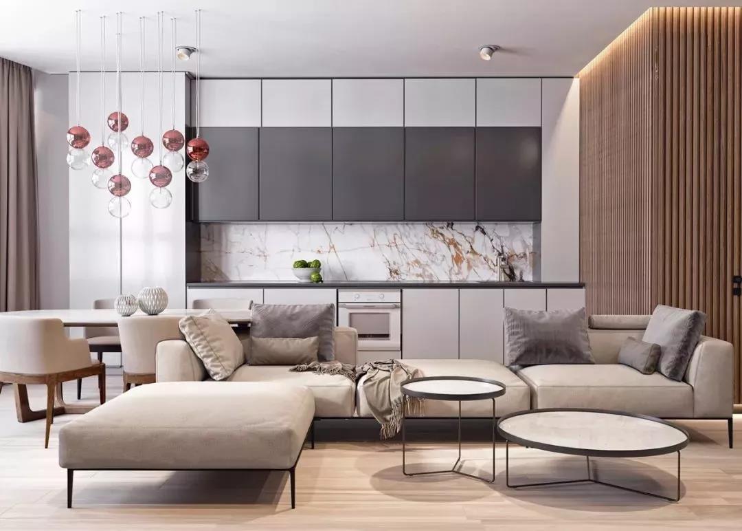 大开间可以选择的沙发种类很多,同样可以跳出固定模式,选择独特的双向式,两边都能坐,最适合一家人在客厅里各自玩耍了。