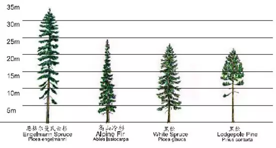 SPF(云杉-松-冷杉)由四类树种组成:分别是白云杉、英格曼云杉、小干松和阿尔卑斯冷杉。这几种树具有基本相同的特性,市场上通常将其统一打包出售,称之为SPF。