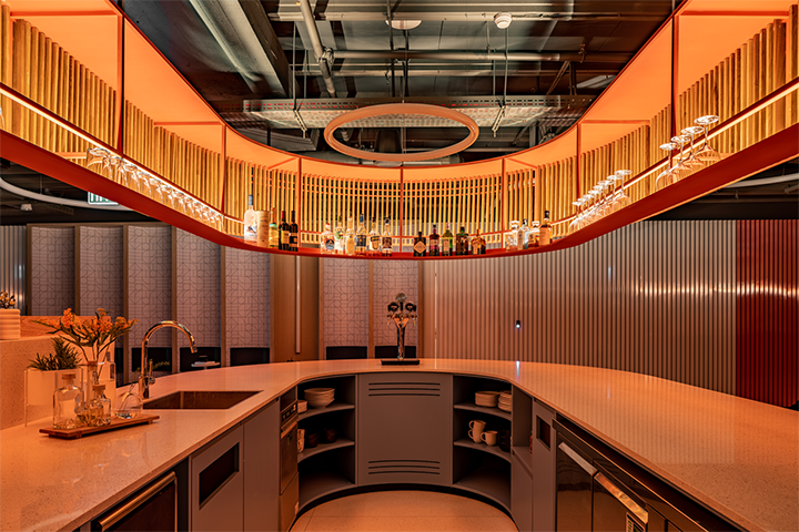 本案的设计语言是一次跨学科的团队合作(建筑师/室内设计师、平面设计师和照明顾问)。每一个功能区域的实践,都经过多次的尝试与合作将各种元素组织在一起去塑造理想的环境,最终形成这样一个复杂而有趣多变的公共空间。