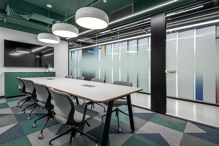 在本项目中,设计团队打造了一处员工俱乐部,周围环绕着会议室和灵活的开放空间。办公室的中心地带是一处与工作无关的员工活动区域。在这里,大家可以从容不迫的进行社交活动。这种氛围与在走廊或小型厨房举办的临时会议有所不同(由于工作是在家里完成的,所以这种会议不会频繁发生)。